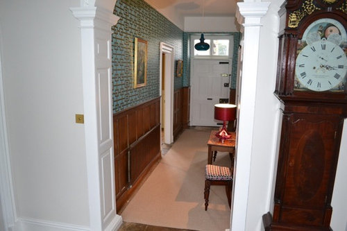 Comments (22)Well the half wall is down :) I have a carpenter on the way to look at boxing in the pillar with the fuse boxes and cutting the step either diagonally across or circular. I'm thinking about replacing the carpet with a runner and assume I could do that with either shape? I'm either going for F&B Stiffkey Blue (2 in from the left, second up from the bottom), F&B Hague Blue (2 in from the right, second up from the bottom) or Valspar Play me a melody (first column, second from the top). Stiffkey and the Valspar are looking a bit too blue and Hague Blue may be too dark so going to paint bigger areas and see how they come out....See More- 8 years ago