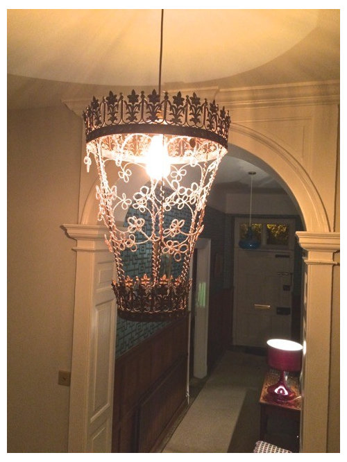 Comments (29)Font of our house is north east facing and only gets the morning sun. Neighbours windows across the road does bounce back a bit of light but not a huge amount. It’s the dark front door and hideous artex (which may well contain asbestos) that contribute to the doom and gloom here. Project for another day;). I think lighting will be a key thing for you, something with a lot of faceted glass or crystals might help to distribute the light around more. I really like these holophane or prismatic glass pendants atm. Some are a bit pricey tho. Some inspo:...See MoreShould I paint my hallway dark?