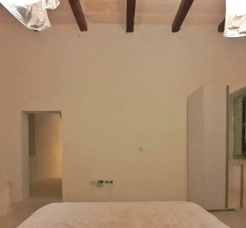 I have the main bedroom with a wall that is a bit of a pickle... it had two accessways but then I closed one off to win some space. I had also purchased a white minimalist wardrobe and this was supposed to go to the wall opposite the bed not the one right in front of it. So there's been a bit of a change of plans. Since the room also has windows on either side the most sensical thing to do was to place the wardrobe where it is now. Only that the wall feels unbalanced because of the wardrobe.