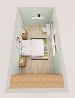 Comments (4)Have you tried turning your bed 90 degrees and placing under the sloping ceiling? Also, change your door hinges so the door opens towards the wall. I know this will block the light switch but it's a small price to pay to get more floor space that the door swing is currently eating up!...See More- 12 months ago