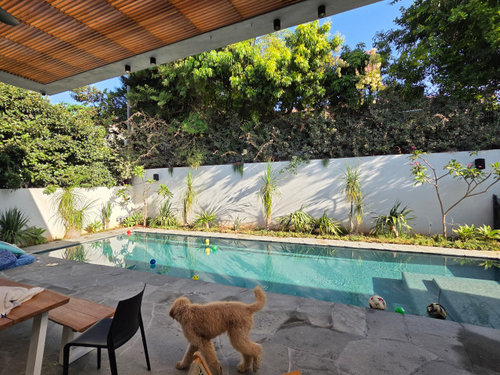 We recently finished building our pool area, but it feels too empty against the white wall.