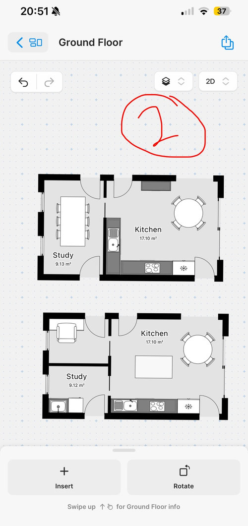 Option 2 - there’s a smaller study and a utility room with external door. However, accessing the utility means I would lose the kitchen corner.
