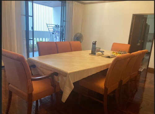 Im looking to change the upholstery of these dining chairs. The entire house has wood flooring and wood furniture. Dated, classical style house but well maintained. I have narrowed down the chair colours to a blush pink (in velvet), shades of green or blue in cotton fabric. Please help ! Thank you