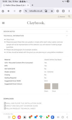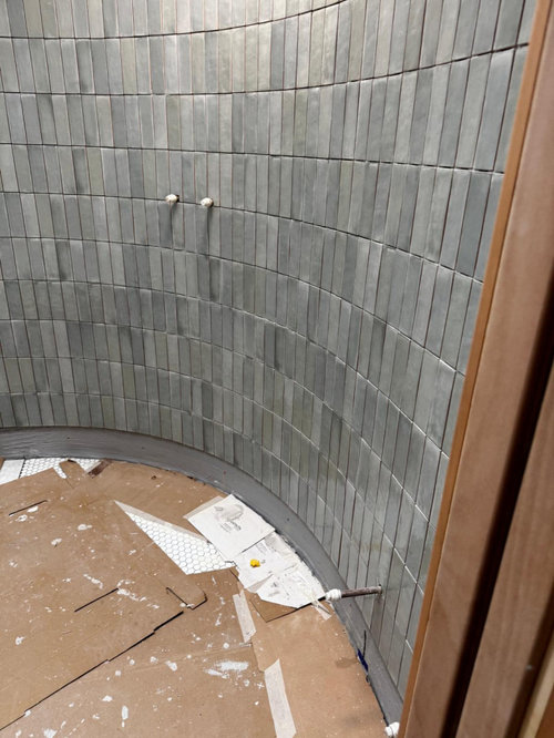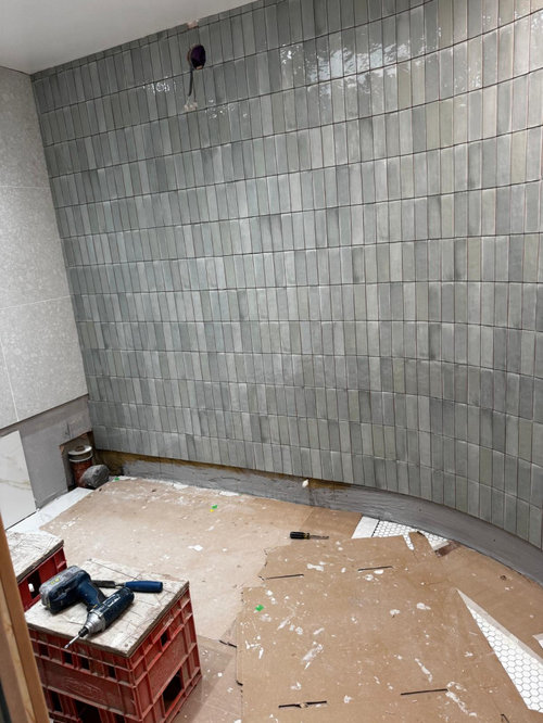 Hi everyone, I am renovating a bathroom for the first time - I've selected my tiles (not even sure if I like them anymore) and made the mistake of using bright white grout for my floor and one wall tiles. I do not want to make the same mistake. I'm using Felini Gloss Oliva tiles for the curved wall in the photo - any advice on which grout to use would be so helpful. My tiler has said ideally he wants to use a Mapei one which means I'm quite limited... All thoughts are so appreciated!! Thank you in advance.