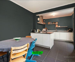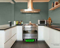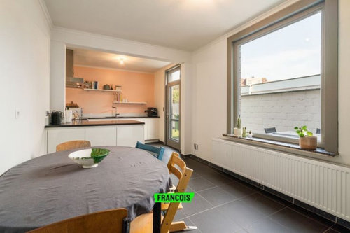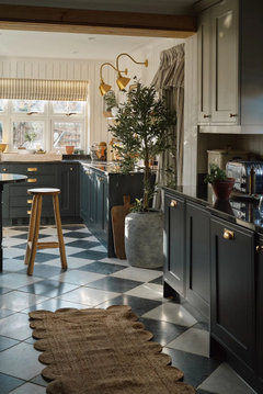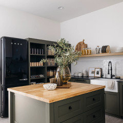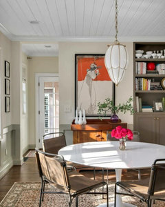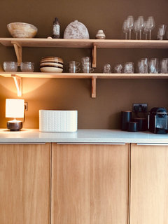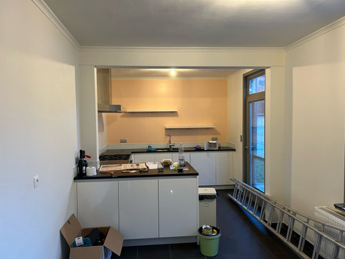 I was thinking about maybe painting the now pink wall another darker colour, and then maybe the ceiling in the first half of the kitchen (where the smaller table is placed in the first picture)