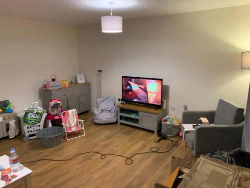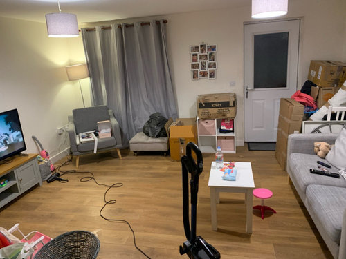 Hi, I’m after ideas for what to do with my living room. I’ve literally just moved in and dumped stuff in there so please excuse the boxes toys and mess. I’m after ideas for layout for the current furniture I have, which is 2 seater sofa armchair sideboard and small table and chairs. I plan to get a much larger dining table and chairs so was thinking to separate the areas but want to find the best layout. Also any ideas welcomes for decor, wall colours etc. I’m planning to white wash the walls for now as previous owner had a dog and want to get rid of the smell, and then I will decide on wall colours after that. Thanks for reading.