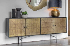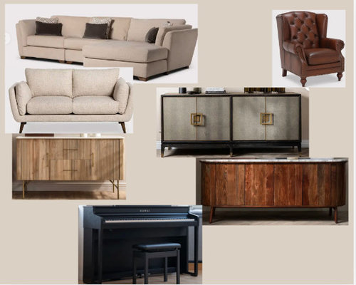 Trying to bring the living room together and can't decide on the sideboard console. Attached in the pic of the living room with the current furniture and layout. On one side is the conservatory and bay window on the opposite to conservatory. There is a black piano in the conservatory (behind the small neutral sofa). I have tried to put together few sideboards with the sofa and accessories. Please suggest
