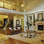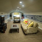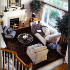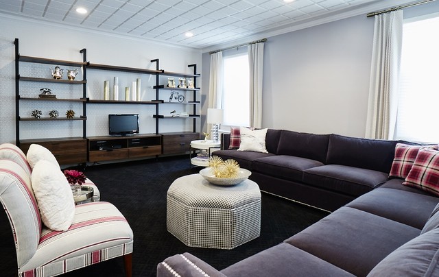 Design ideas for a large traditional open plan living room in Cedar Rapids with grey walls, carpet and no fireplace. — Houzz