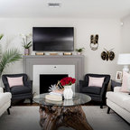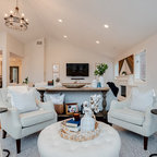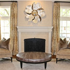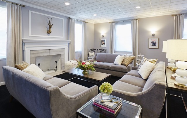 Photo of a large traditional formal open plan living room in Cedar Rapids with grey walls, carpet, a standard fireplace and a stone fireplace surround. — Houzz