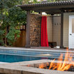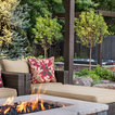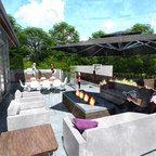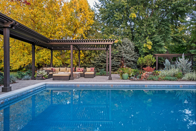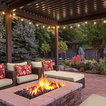 Inspiration for a large contemporary back formal partial sun garden for autumn in Boise with a fire feature and brick paving. — Houzz