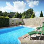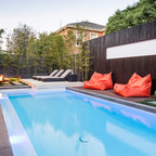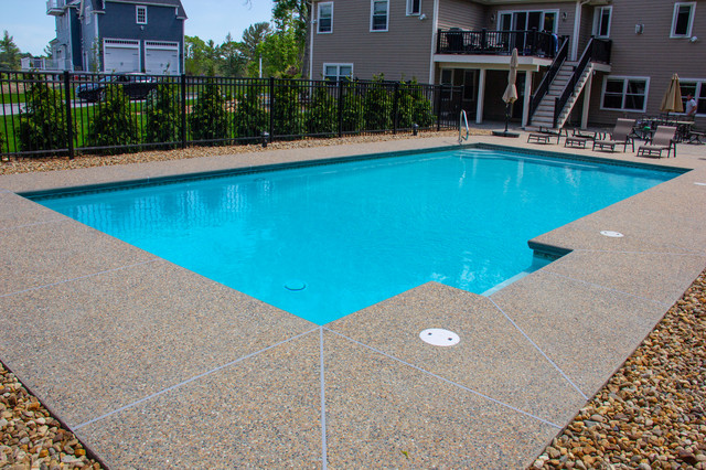 This is an example of a medium sized back rectangular natural swimming pool in Boston with decking. — Houzz