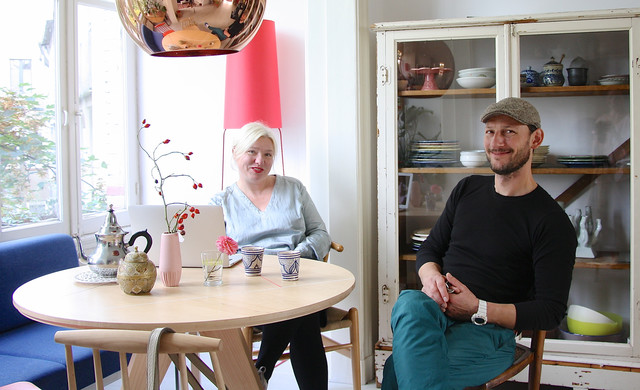 Boesveldt and Yashkin relax in their dining room. The couple admits they do not always see eye to eye on all design-related decisions but, Boesveldt says, they ‘always agree in the end - sometimes after some discussion, of course.’ They also share one important factor: an appreciation of simplicity.