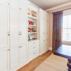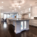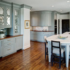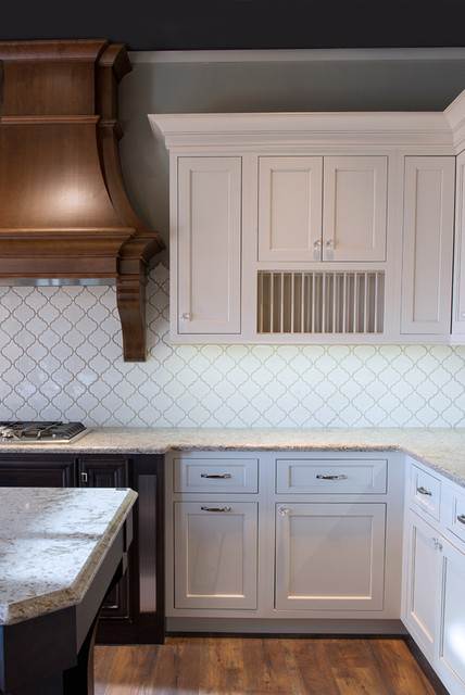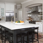 This is an example of a traditional kitchen in Cedar Rapids with beaded cabinets, beige cabinets, composite countertops, beige splashback and mosaic tiled splashback. — Houzz