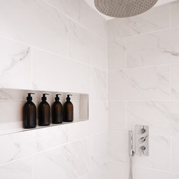 These clients wanted to refurbish their 2 bedroom flat in Marylebone but only had 75k budget. With the help of our in-house interior designer, we selected the lower cost materials, combining them with bespoke added details that we built ourselves.