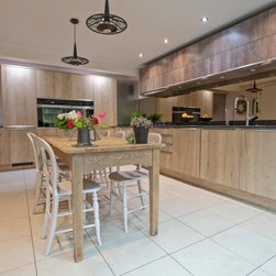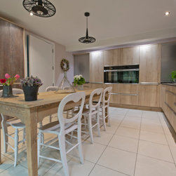 Modern Handleless Kitchen with Warm Oak & Herringbone Flooring