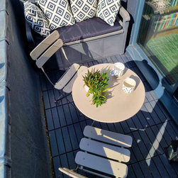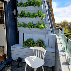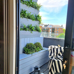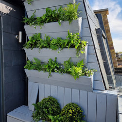A small and monochromatic space in stoke Newington where a vertical planting allow more the space to be used for entertaining, drinking coffee or just relaxing in a warm and sunny day