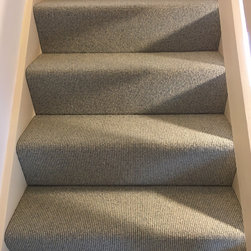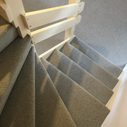 She wasn’t set on an idea but knew she didn’t want reds, and wanted it subtle and in keeping with the blues that are on the walls. She chose a Tolenzo Mainline Carpet in Colour Gloucester Road which is a greyish colour.