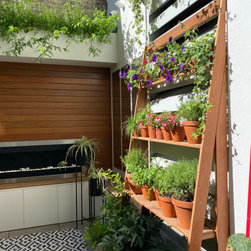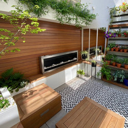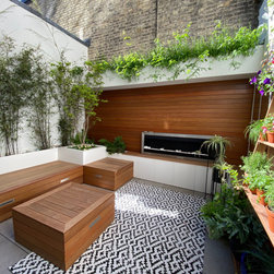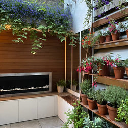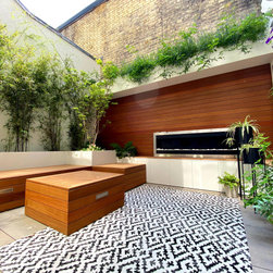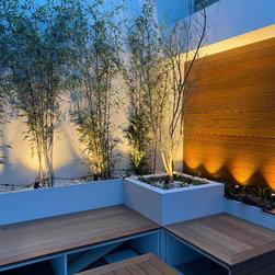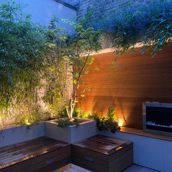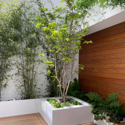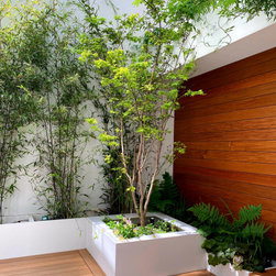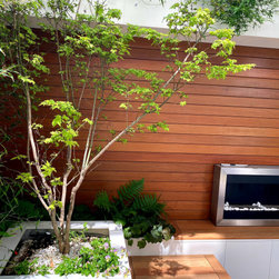 A small garden designed in Collaboration with Theater designer Marsha Roddy. This is a garden that is an extension of the client bedroom and it was used black bamboo, ferns , heucheras and a golden acer as a center point in the garden
