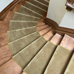 Given the dyeing process and custom nature of the carpet colour, any mistakes at the cutting stage would be a waste and would delay fitting so each stair had to be templated to ensure that the correct size of carpet was cut for the stairs. The edges were also whipped (bound) to stop any fraying.