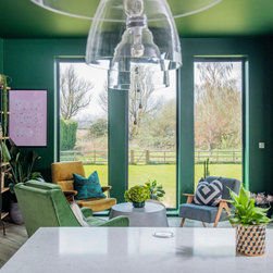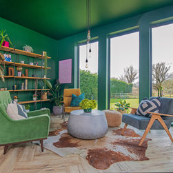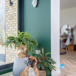 I am so pleased with the mix of chairs in this room all with a mid century feel to help tie them all together. I love how the green Scott from @madedotcom looks paired with the Dodson velvet ochre by @abigailahern – MAGNIFIQUE