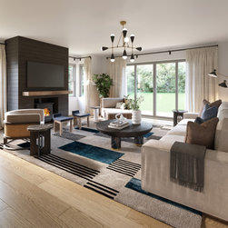 We created this industrial design for a contemporary country home that brought in elements and textures from the surrounding nature in an inviting new build design