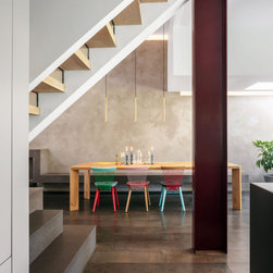 Solid planes and voids alternate in a fashion that is a direct reference to certain inner London Victorian housing blocks.