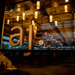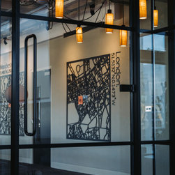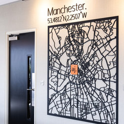 RMD were approached to transform an office space located in Spinningfields, Manchester for the new premises of Andersen James Group. The project involved creating a new exciting space that included a board room, a podcast room, central office desks, a reception/entrance and a Kitchen/Bar and sitting area for relaxing and social interactions. Some of the walls featured large maps of Manchester, London and New York representing each of the companies office locations.