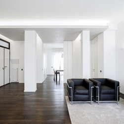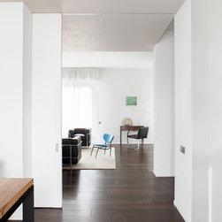 The concrete structure allowed us the freedom to manipulate the floor plan with few constraints. The removal of partitions and the addition of dividers can be then used, without restrictions, to re-proportion each existing and newly obtained space, in such a way that each space is arranged in a sequence, with each space the subordinate to its former one.
