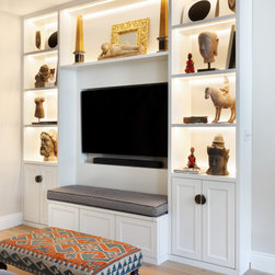 A comfortable space created with the clients love of art & design in mind. Modern Furniture combined with antique features give a welcoming space. Use of bright feature colours and fun patterns make it an individual space made perfectly to taste.