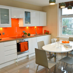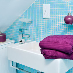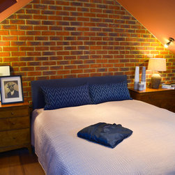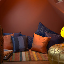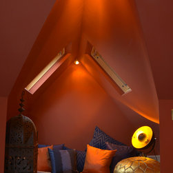 A loft conversion to create a private space within a family house.....New York Loft meets Morocco, with exposed brick, mellow colours and a chill-out snug straight out of Marrakech. In the kitchen and shower room, we employed bright colours to create vibrant, modern living spaces contrasting with the mellow, relaxed atmosphere of the studio room.
