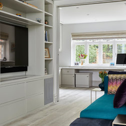 They wanted a ‘wow' factor which was achieved with the glass facade to the rear of the property. Also the open plan and flow of the ground floor rooms was largely alterred. The ground floor of the property was largely remodelled and some original features were re-decorated and improved with a new lighting system. New flooring and kitchen