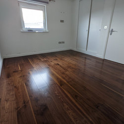 We used matching walnut engineered boards of a very similar size with only a couple of mm difference. The product - Walnut Board Premier Unsealed Natural 20x180mm - is available direct from Fin Wood. We introduced a change of direction in the bedrooms to accommodate the mm difference in size. We seamlessly joined the old floor and the new so there was no detection of difference underfoot maintaining a continuous warm floor throughout the home.