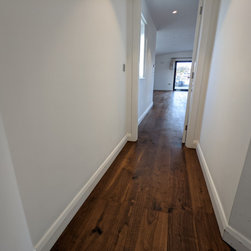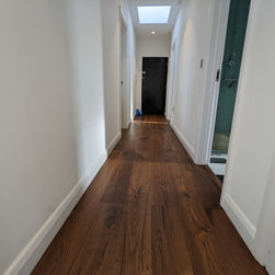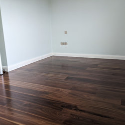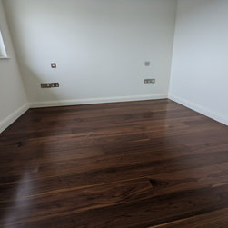 The customers cleared the property of furniture which is especially helpful for effective sanding. A clear surface is essential for a good, scratch free finish. After we were professionally satisfied with the sanding we applied two coats of osmo polyx oil satin. The new floor was untreated and we applied the Osmo polyx oil satin finish to the whole floor. We created a dark walnut floor with irresistible warm chocolate tones. It is worth mentioning that walnut in all its beauty is a softwood and is best suited in pet free, adult spaces.