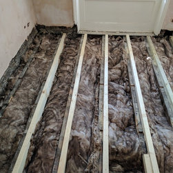 With end grain flooring, it’s essential for the subfloor to be level and strong. The original Victorian suspended subfloor wasn’t in the best condition and when we removed the old floorboards we found lots of rubbish left by previous trades. This had to be cleared up, so the air could circulate freely. The rotten joists were replaced and we repaired those that were damaged. We then insulated between the joists with mineral wool.