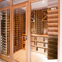 Bespoke solid oak wine room made in York, North Yorkshire. We can make any size shelving based on our designs to suit your individual space.