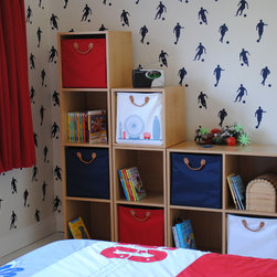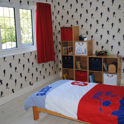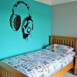 We had the pleasure of doing up this boys bedroom. The clients wanted to move the bedroom on from a toddlers bedroom to a more grown up space. We went for a grey and bright blue colour scheme to compliment the gorgeous fabric we used for the blinds. Plenty of storage was added and a huge headphones...