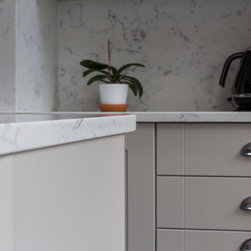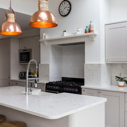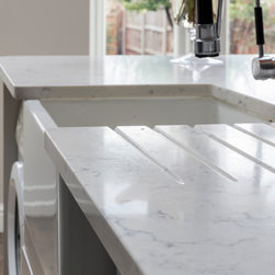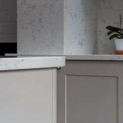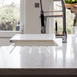 We templated, supplied and installed Bianco Carrara quartz for a very happy customer in South London. Everyone is aware of the marble version, as it is one of the most popular marbles on the planet. However, marble is not suitable for a kitchen and the introduction of a marble quartz allows the consumer to have the look of marble but not as porous.