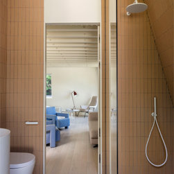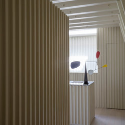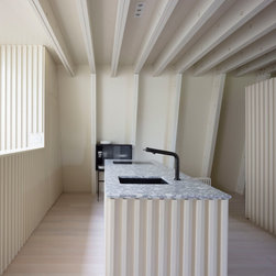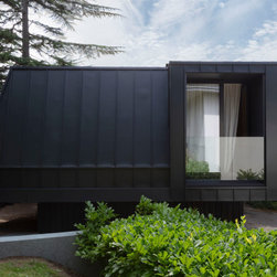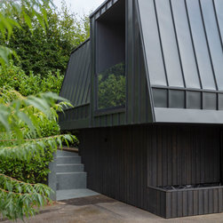 On the outskirts of Guildford, CASA BASSA transforms a former garage into a versatile hybrid house inspired by AI concepts. Its design features a dynamic binary rhythm of materials and a mansard roof that responds to the site’s topography. A dark, monolithic exterior contrasts with a bright, flexible interior, seamlessly blending sustainability, craftsmanship, and innovation.