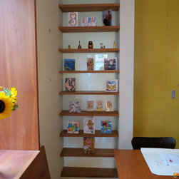 View of shelves and dining table