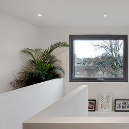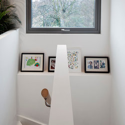 Planning Approval was gained for the conversion of the existing attic to accommodate two new bedrooms (for the boys), a large, light filled family bathroom with separate bath and shower, a purpose built family office together with substantial integrated storage. The re-configuration of the existing floor included the removal of the existing second bedroom, allowing a much larger open plan kitchen, living and dining space. The removal of the existing internal kitchen enabled a large landing/utility/cloakroom area (which has had a profound impact on time taken to get out of the door with two young boys). The removal of the existing bathroom on this floor made way for the new stair, but also offered a significant amount of additional space to the main bedroom together with an en-suite WC/washroom.