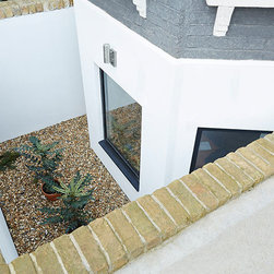 The secondary objective was to relocate the existing utility functions and create a family shower room within the existing partial basement. During the construction works the scope developed to include a guest bedroom and light well within the basement.