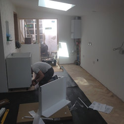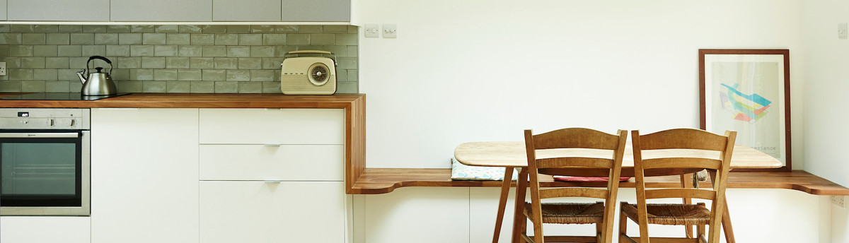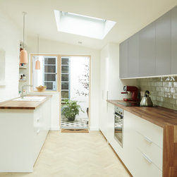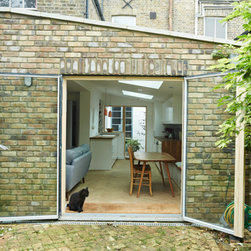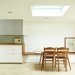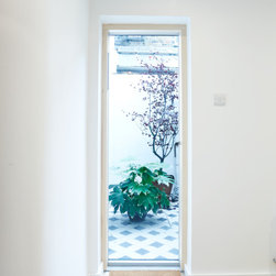 The extended kitchen/ living area has been configured to provide distinct zones for the kitchen, dining area and living space. Views and access to the rear garden are significantly improved and daylight is brought into the deepest part of the plan with large rooflights and patio doors at either end. A courtyard between the rear bedroom, hallway and new kitchen is formed in order to bring additional light and ventilation into all 3 spaces.