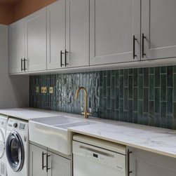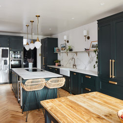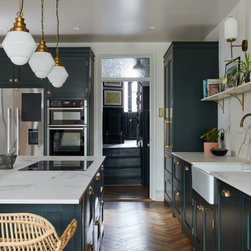 Bespoke cabinetry painted in Obsidian green