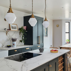 Classic shaker kitchen with brass handles. Walthamstow. East London.