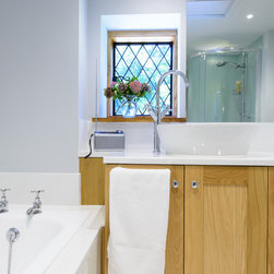 We removed the timber paneling and used a palette of light colours to keep the rooms feel light and open. We also specified heritage style Oak furniture and accessories.