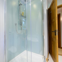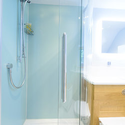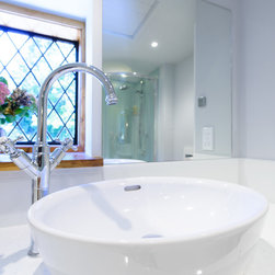 These rooms were a little dated with timber paneled walls which made them feel small and dark. The client wanted to use wall panels instead of tiles to eliminate maintenance and the ease of cleaning. The client was also concerned with the rooms being in-keeping with the period features of the house.