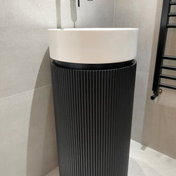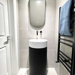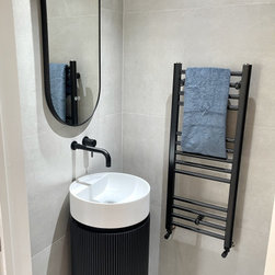 A quick makeover of a clients cloakroom. We used a gorgeous black ribbed pedestal basin to add the wow factor.