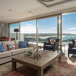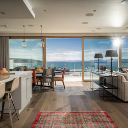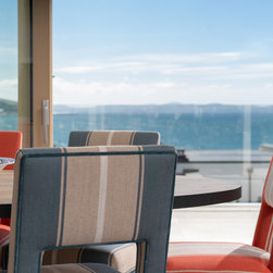Swept away by stunning coastal views, we commenced our interior designs, working closely with the architects Montgomery Irwin. Our brief provided for a fresh palate of new furniture, and our team sourced everything from art work to rugs, kitchen finish to soft furnishings. While a contemporary home, it was important to our clients that we created a balance with comfortable living, combining modern angles and vistas with a relaxed, uncluttered look.