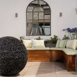 The home centres around a beautiful internal courtyard to protect from coastal winds and elegantly brings inside-outside living into all aspects of the home. We were delighted with the result of this modern, organic interior set in the most breathtaking of surroundings.