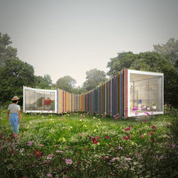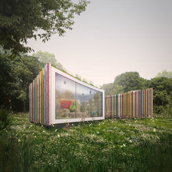 The building is clad in reclaimed timber, recycling the old timber shed and fences that currently occupy the site, that were originally built from timber cut from the woods itself. This provides a strong connection with the past and previous site occupation. The building edges are deliberately soft and undefined, blurring the house with its landscape context, blending with the wild flower meadow clearing and the surrounding woods.